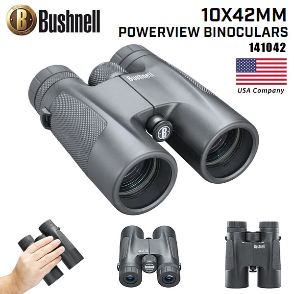 The Bushnell 10 x 42 mm Powerview Binocular 141042 is great for full-size viewing and long-range observation. The optimum combination of performance and value for any pursuit. Features such as their soft-touch grip pads put them a notch above the rest, and everything looks better through bright, clear, fully coated optics.